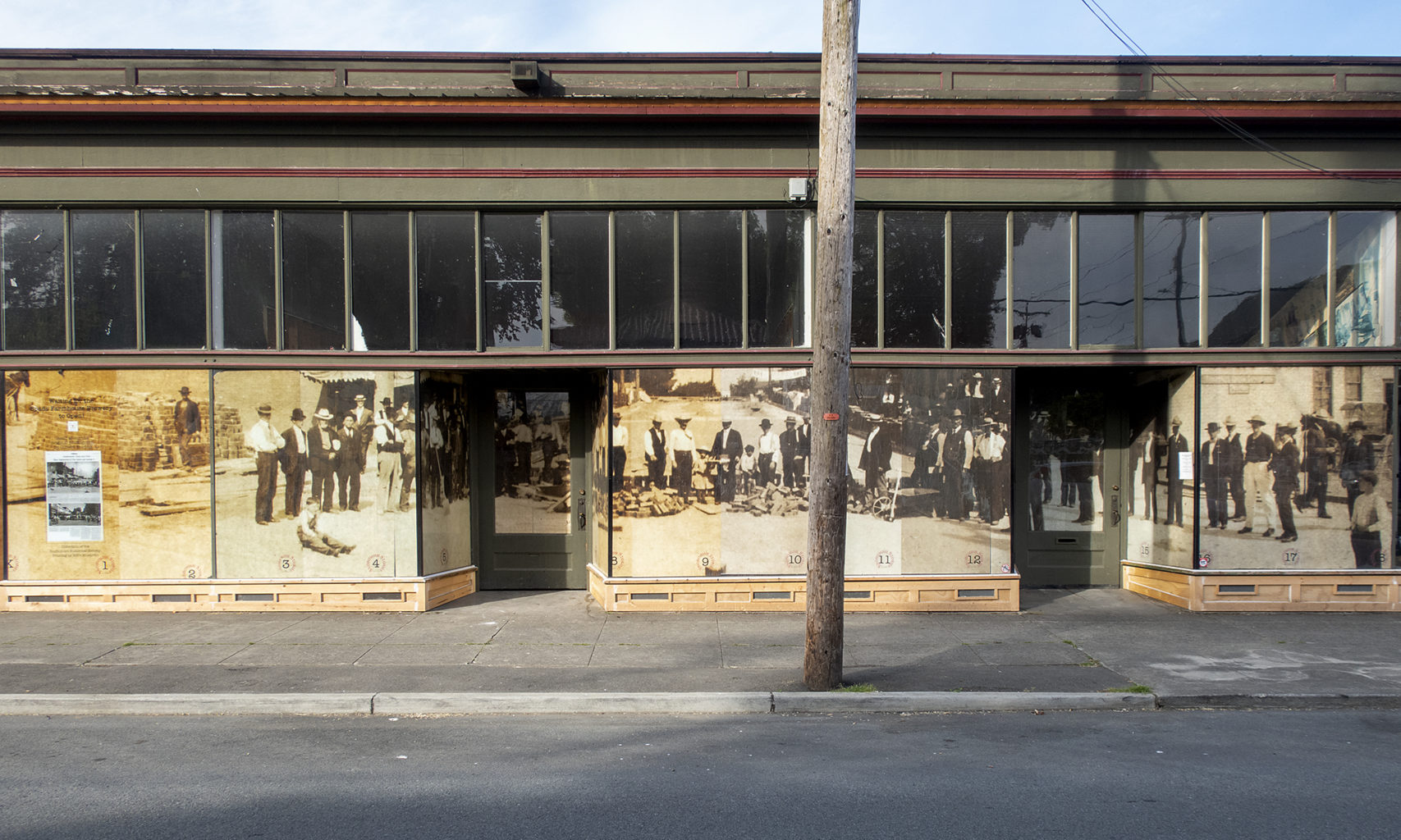 Then, pitched her the idea of replacing the brown paper with inexpensive bond paper prints of a historic image divided into sections. It’s an idea that comes to me every time a store on First Street changes hands and the windows are covered with kraft paper which eventually loses its battle with gravity and looks a mess!